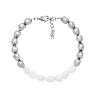 A refined bracelet crafted with 6mm natural baroque pearls and stainless steel for durability and modern appeal.