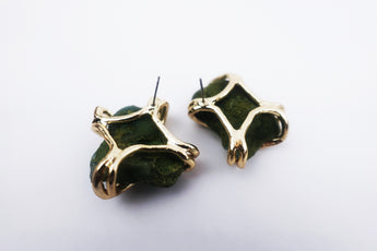 The Green Agate Earrings combine elegance and timeless style in a handcrafted piece of jewelry. Each earring is made of brass with 18K gold plating and features genuine green agate, a stone associated with harmony and balance.