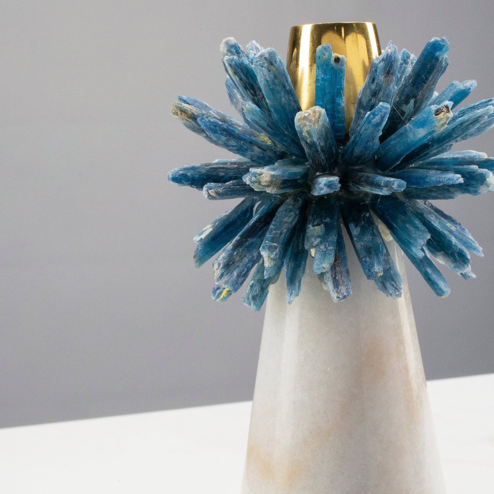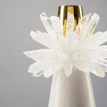 Quartz Glow Candle Holder – Quartz Candle Holder with Marble Base and Brass Accent