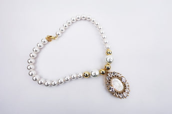 Materials: Pearlescent glass pearls with 18K gold-plated accents