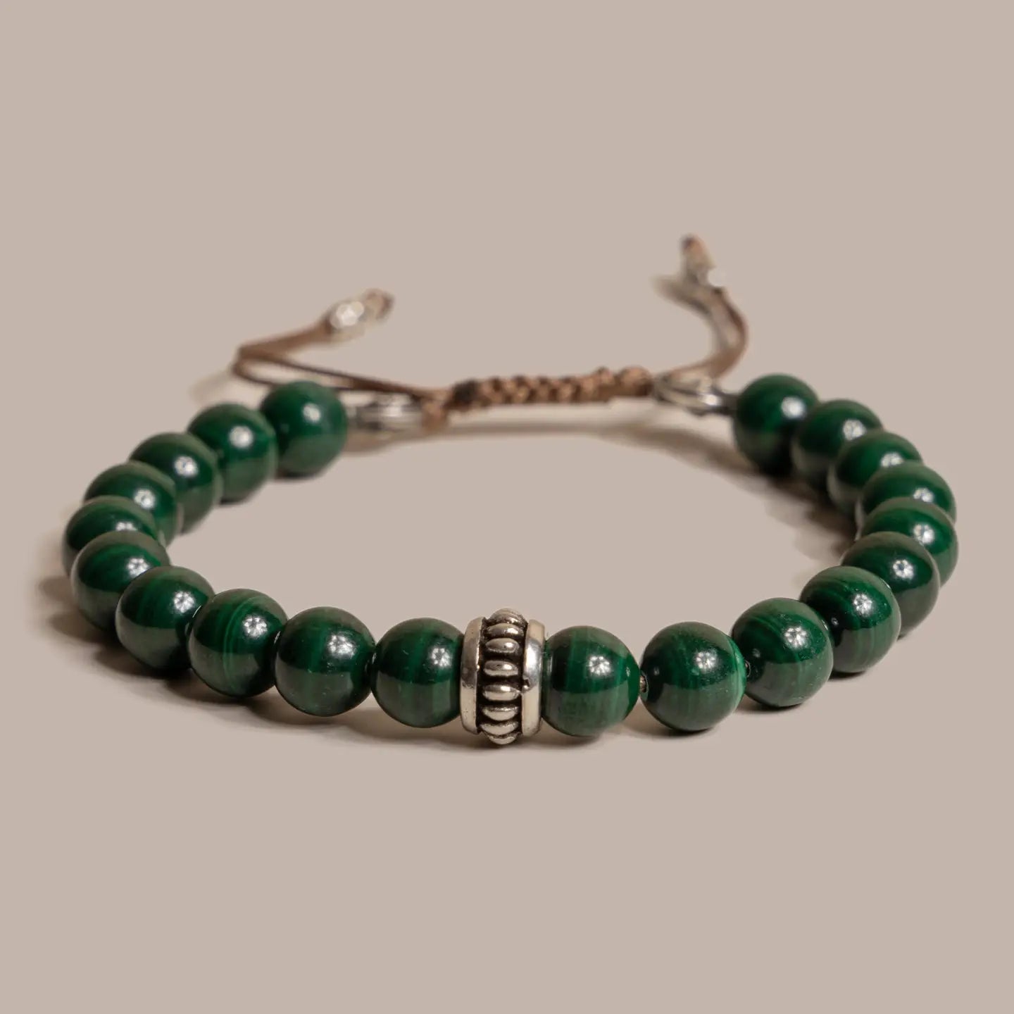 Malachite is valued for its strong protective properties and its ability to absorb negative energy, supporting emotional balance and inner harmony. Adjustable to fit most wrists (6"–8"), it’s a versatile accessory for everyday wear or a meaningful gift with intention.