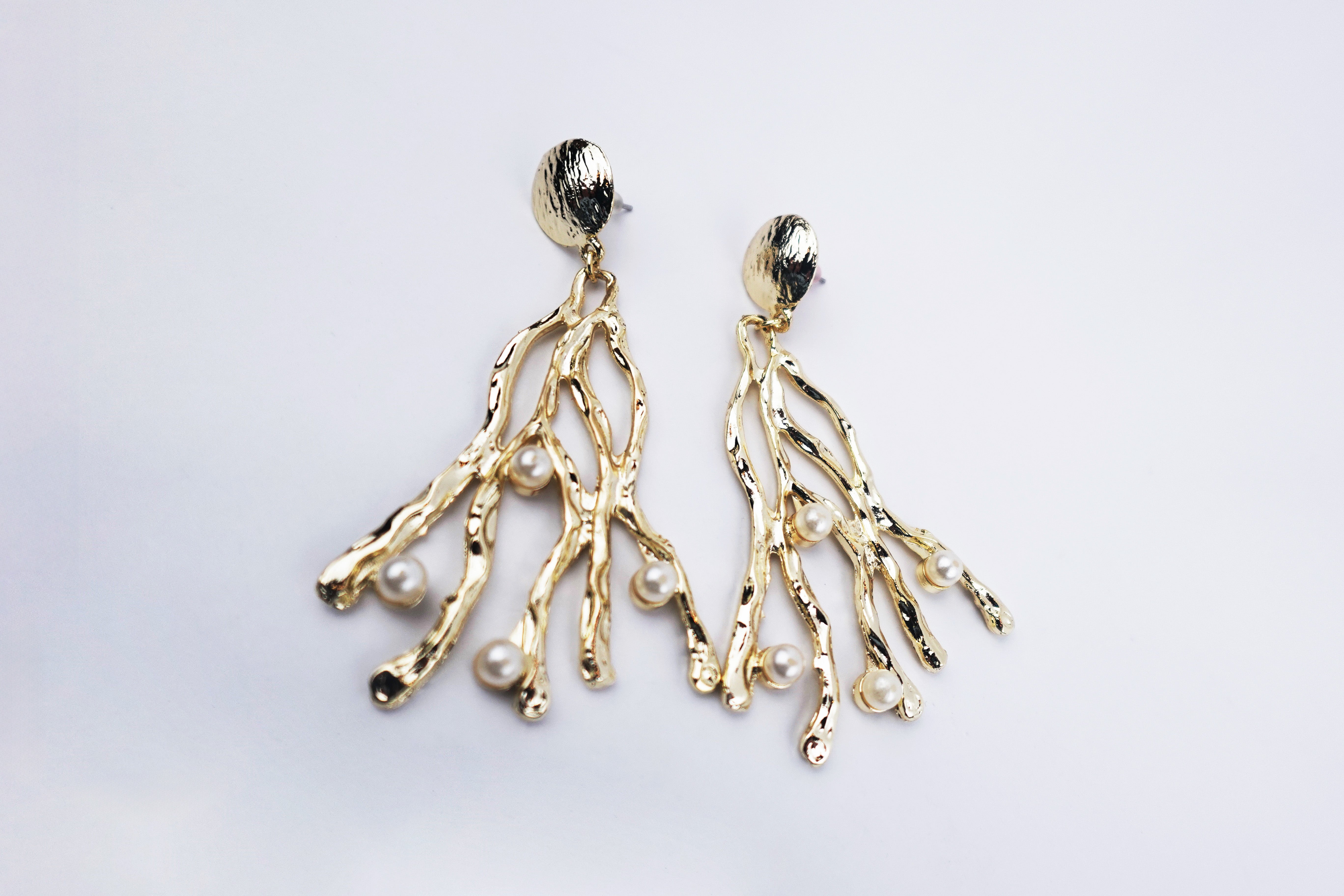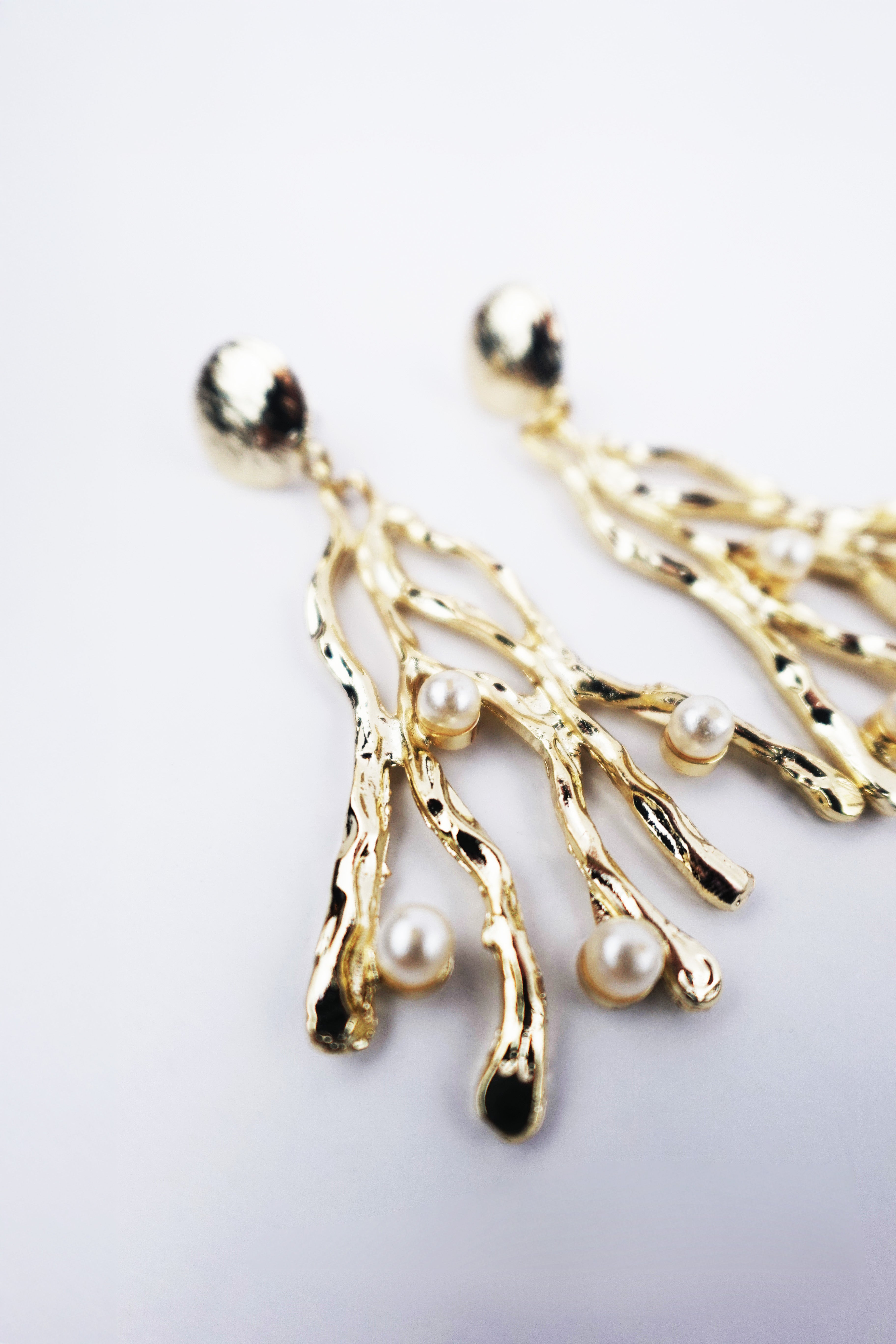 The Pearl Branch Earrings feature an elegant and artistic design that evokes golden branches adorned with delicate natural pearls. Crafted in gold-plated brass, they offer a bright and textured finish that enhances the softness and luminosity of the pearls.