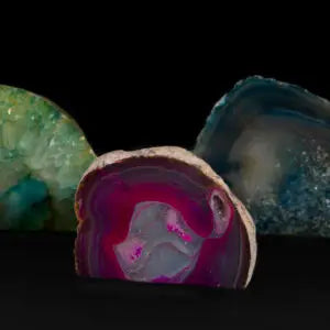Bring the beauty of natural agate into your space with these Assorted Agate Ends, available in four stunning color variations: Aqua, Purple, Blue, and Pink. Each piece is a unique cross-section of agate, showcasing distinctive banding, textures, and crystalline centers that make every stone one of a kind.
