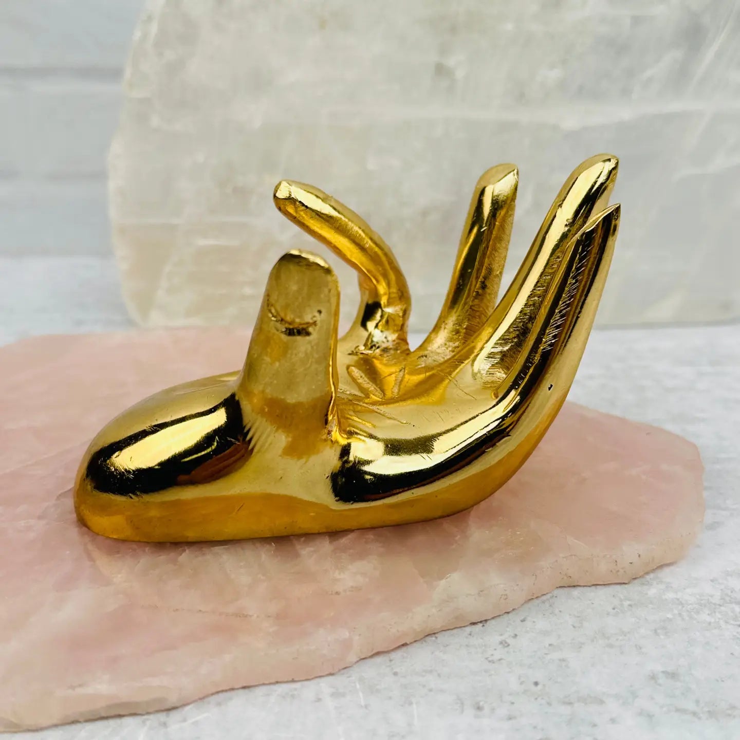 Elevate your favorite crystal spheres with the Divine Palm, a sculptural aluminum hand stand that symbolizes protection, balance, and spiritual grounding. Perfect for altars, desks, or bookshelves, this striking piece adds a sacred touch to your space while beautifully displaying your most treasured stones.