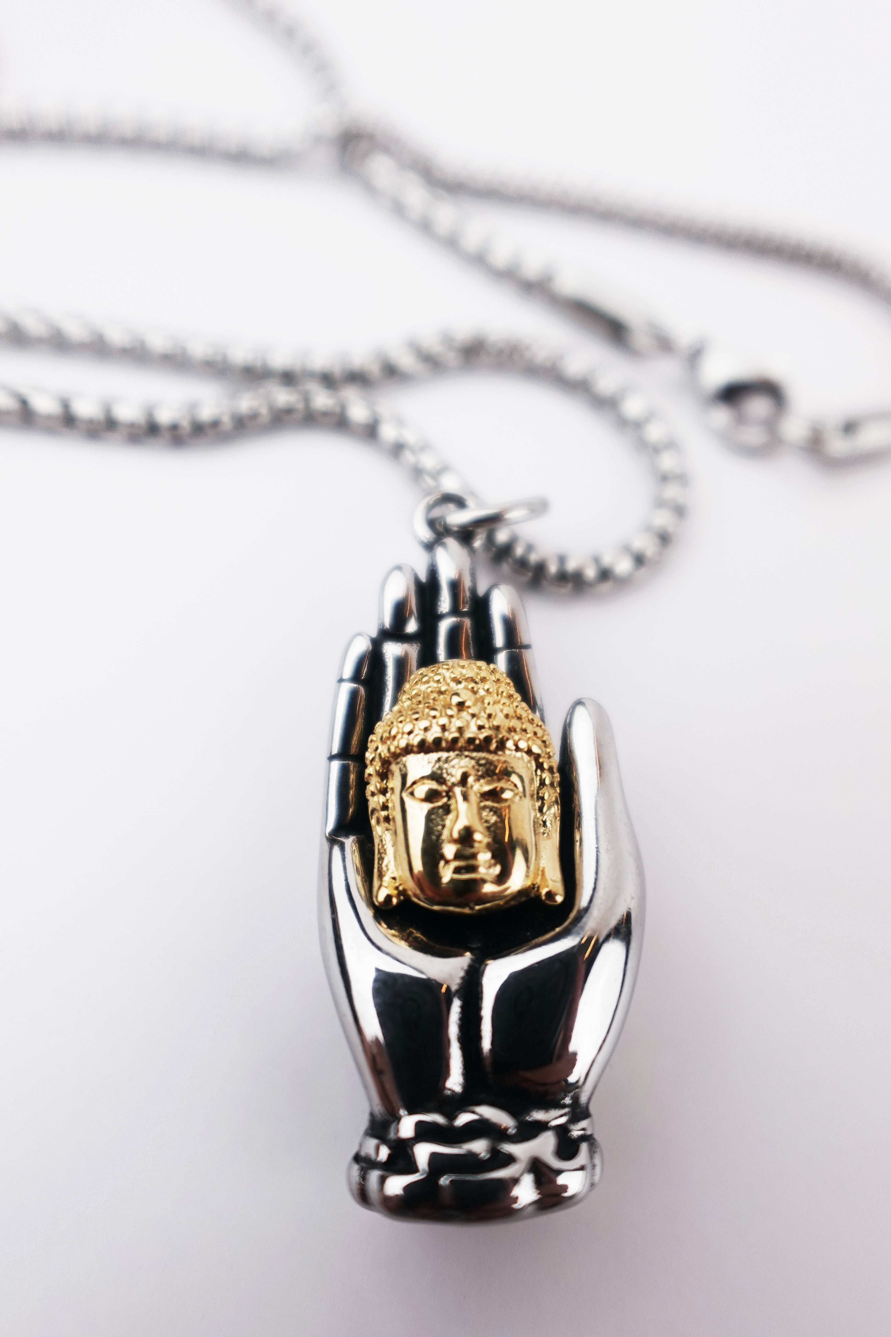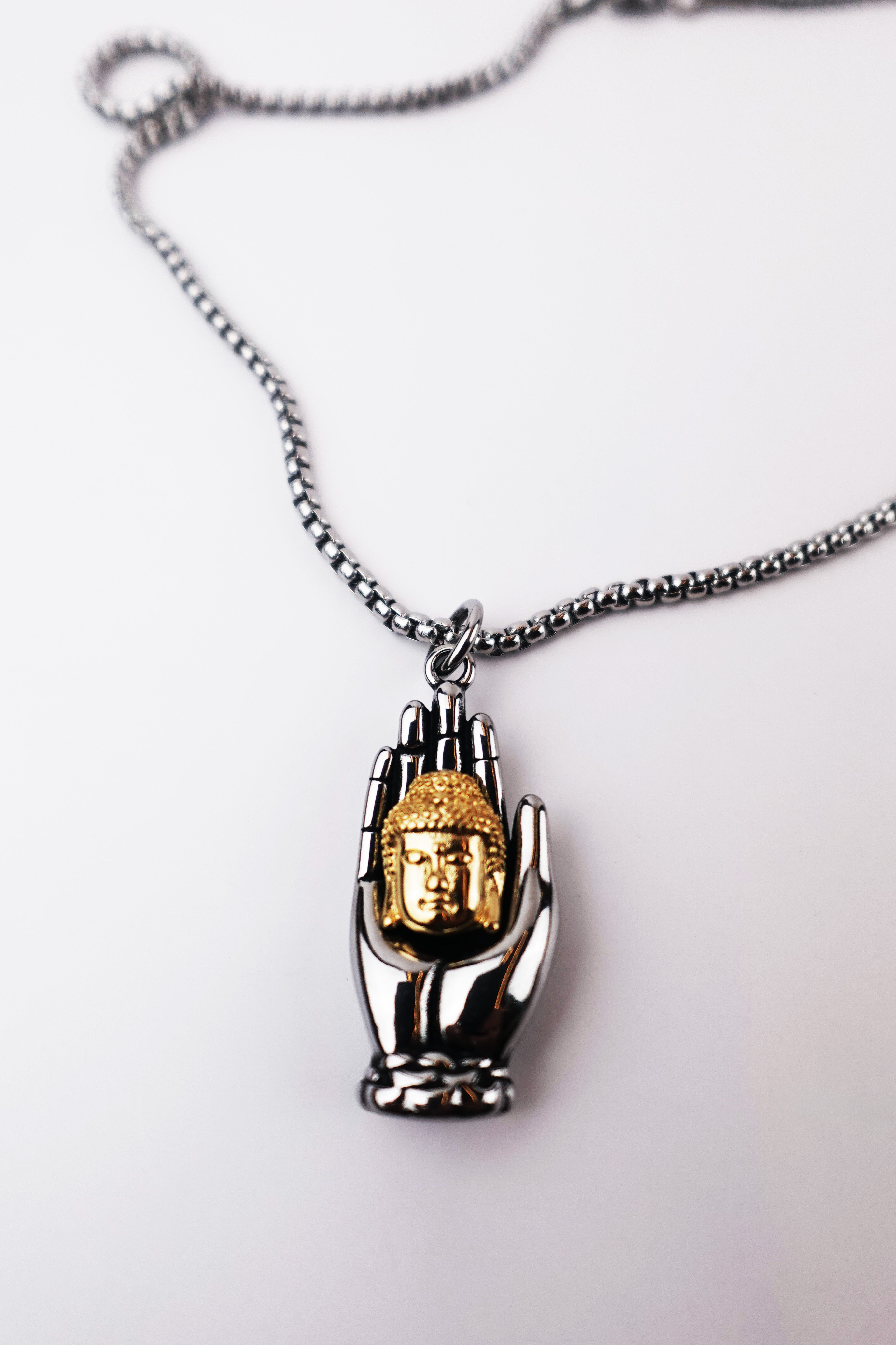 Buddha Palm Necklace Gold & Silver Stainless Steel