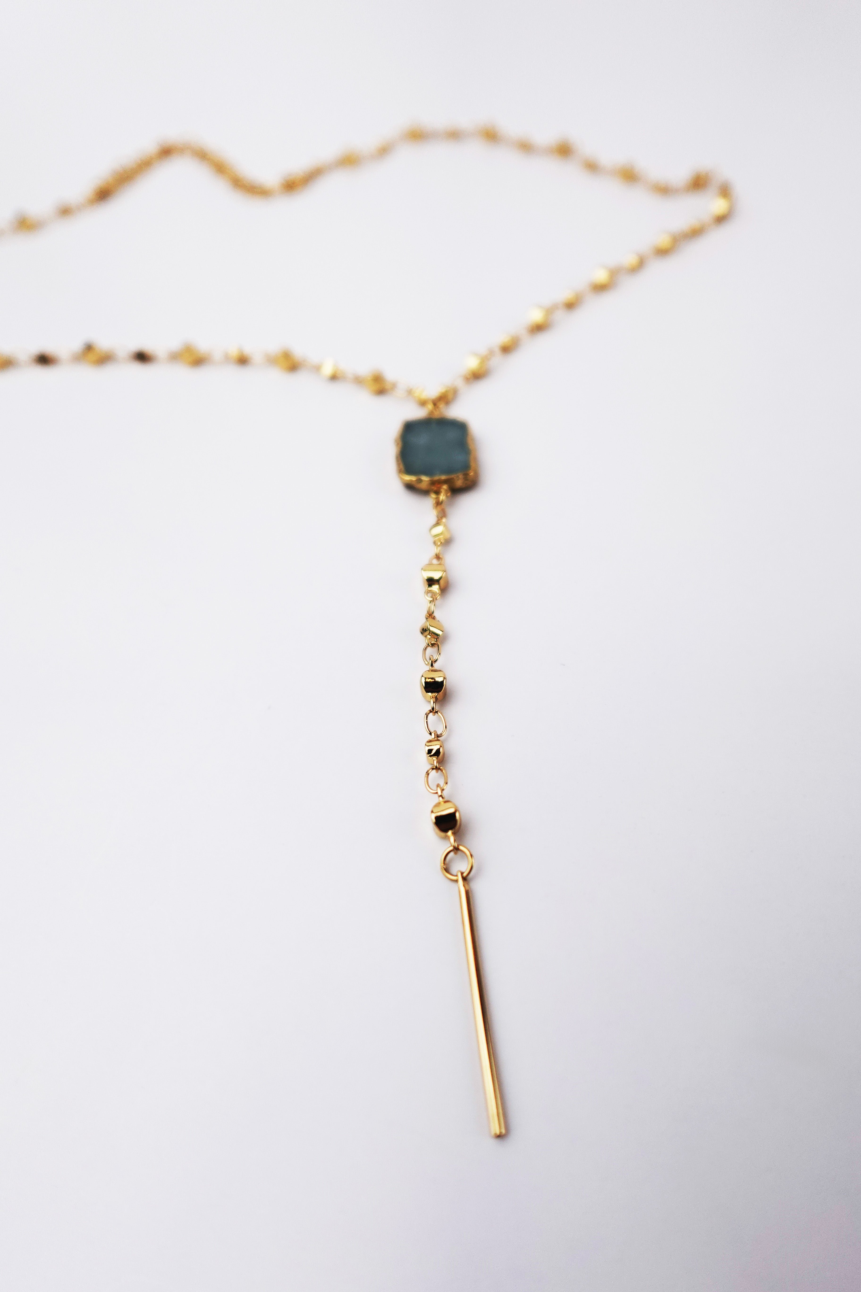 • Design: lariat necklace with drop detail