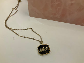 Obsidian Octagon Evil Eye Gold Protection Necklace
