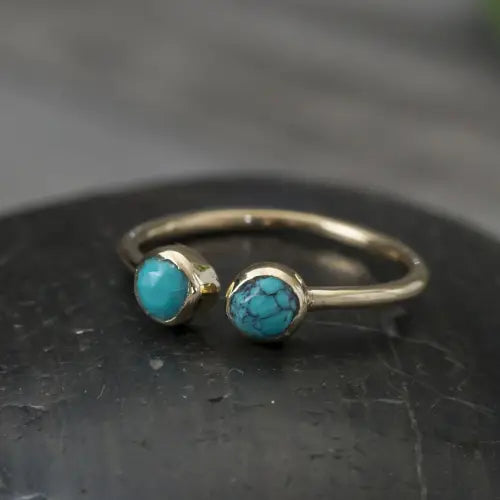Two turquoise stones, one design full of balance and beauty. The Brass Ring with Double Faceted Turquoise Stones blends artisanal detail with the vibrant energy of turquoise — a stone known for protection, clarity, and emotional healing.