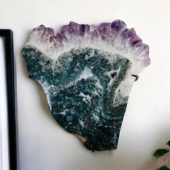 The Sacred Earth is a one-of-a-kind crystal wall art piece that fuses the calming energy of amethyst with the grounding power of jasper in a stunning decorative display. This crystal artwork channels harmony, strength, and natural elegance, making it a true statement piece for spiritually inspired interiors.
