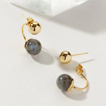 Their front-back post structure allows multiple ways to wear them: use the full set for an elevated look, or mix and match the labradorite ear jackets with other studs for personalized styling. Perfect for those who love adaptable, elegant jewelry with a touch of natural magic.