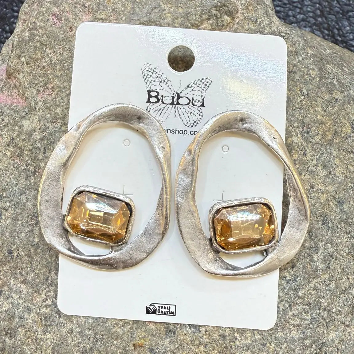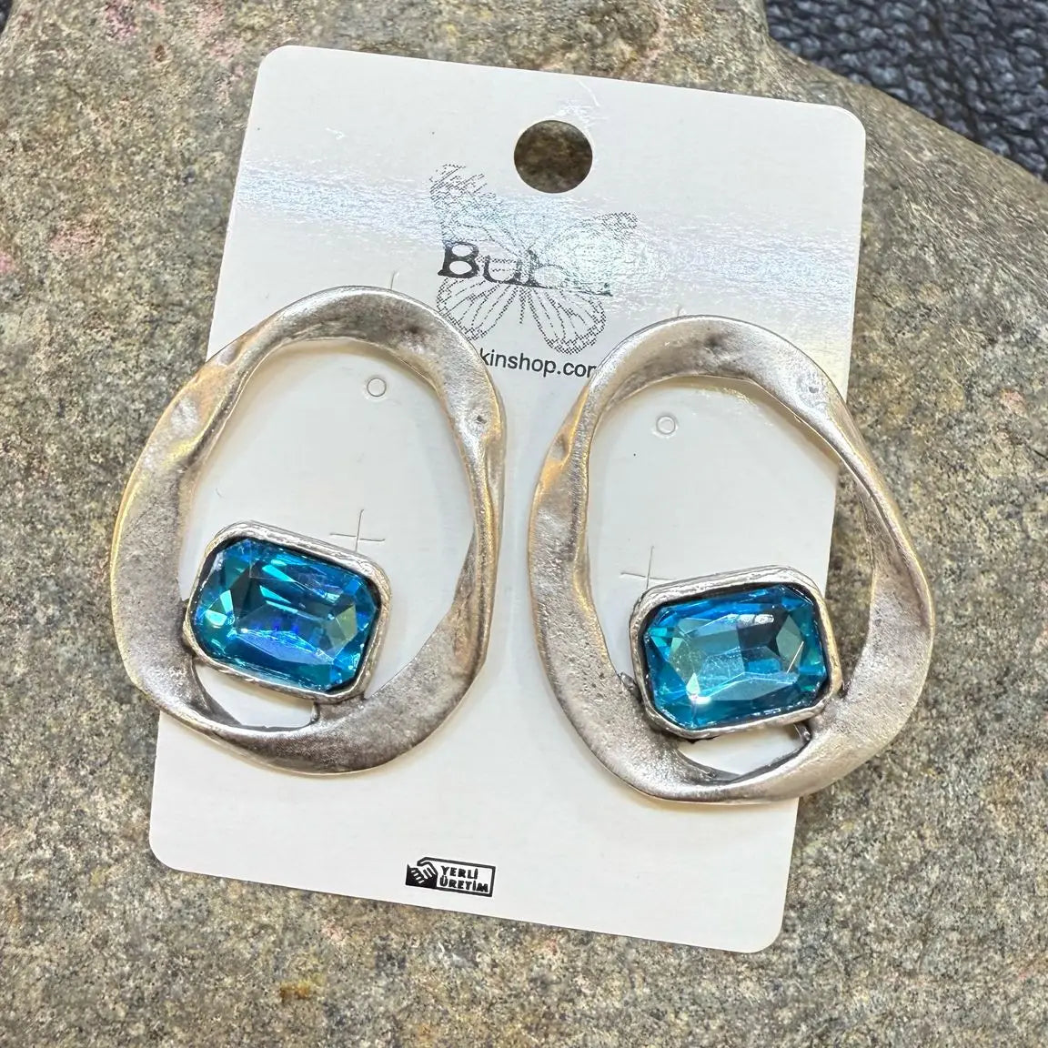Elegant and effortlessly unique — these handmade earrings feature a sculptural organic design in antique silver tone, centered with a brilliant crystal stone that catches the light beautifully. Crafted in high-quality brass with a protective silver finish, each pair is one-of-a-kind and designed to complement every style.
