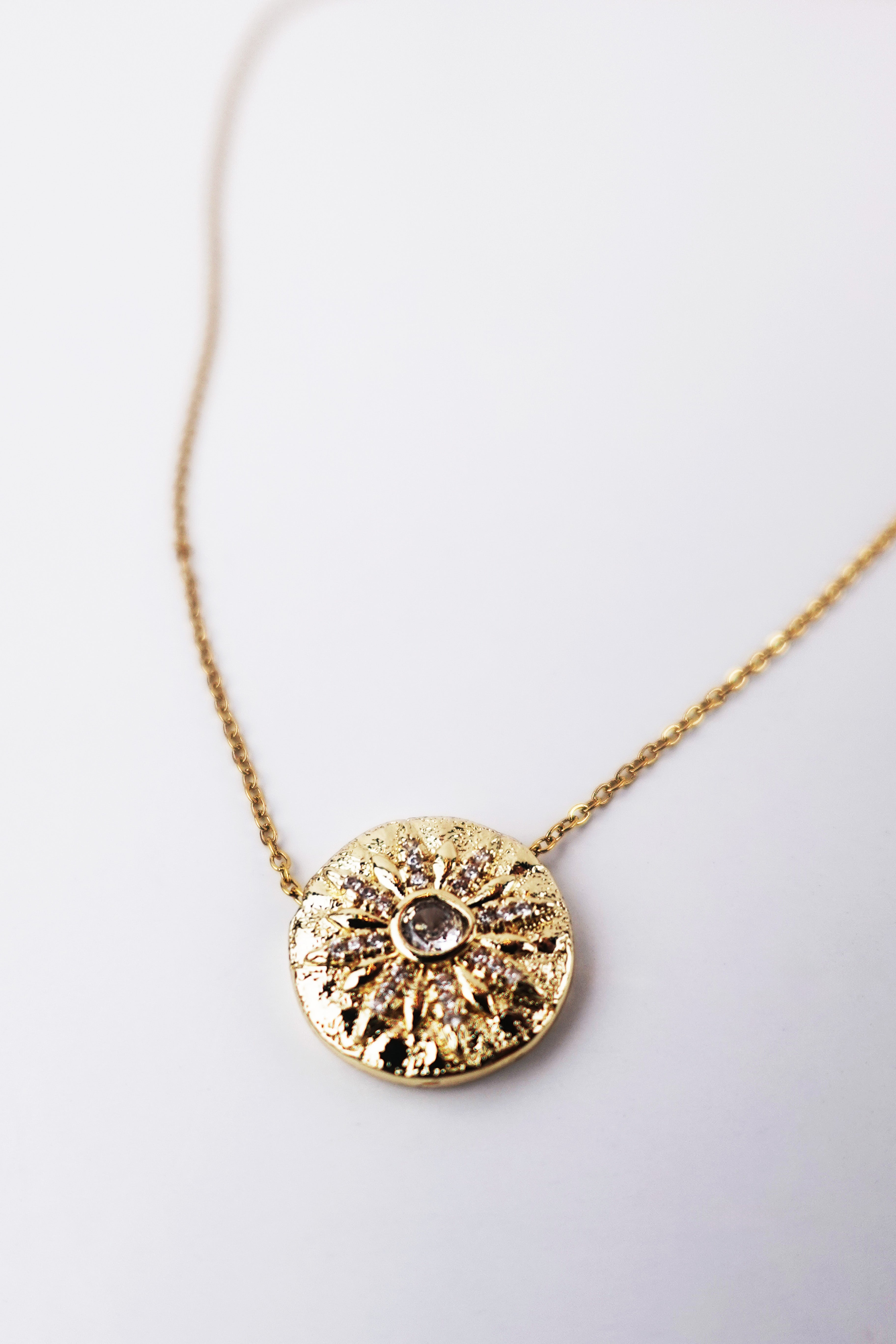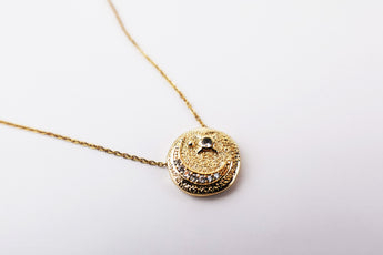 The Golden Talisman Necklace is a celestial-inspired amulet designed to embody strength, protection, and elegance. Featuring coin, sunburst, moon, and heart-shaped pendants accented with galaxy-like zircon details, each piece radiates cosmic symbolism.