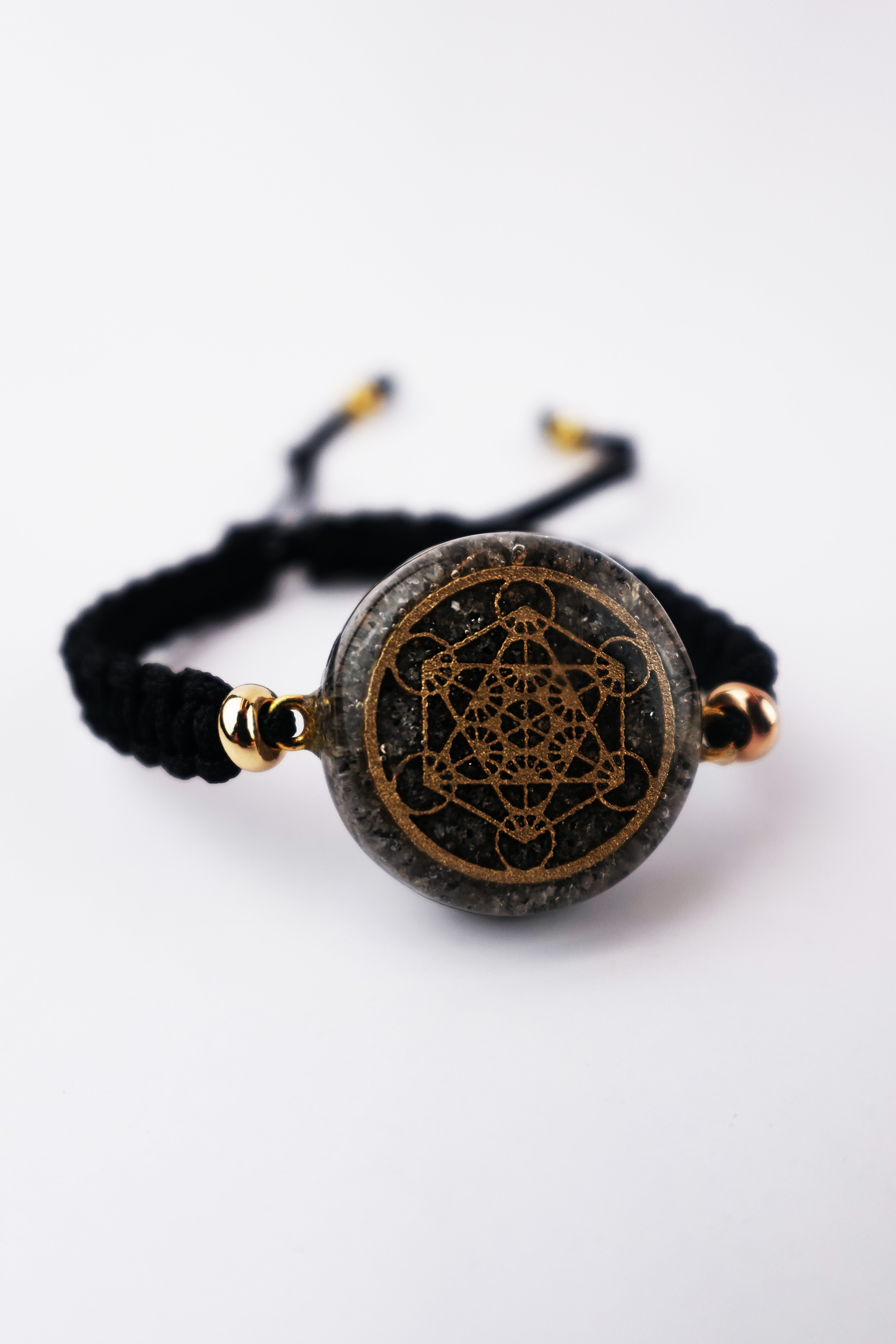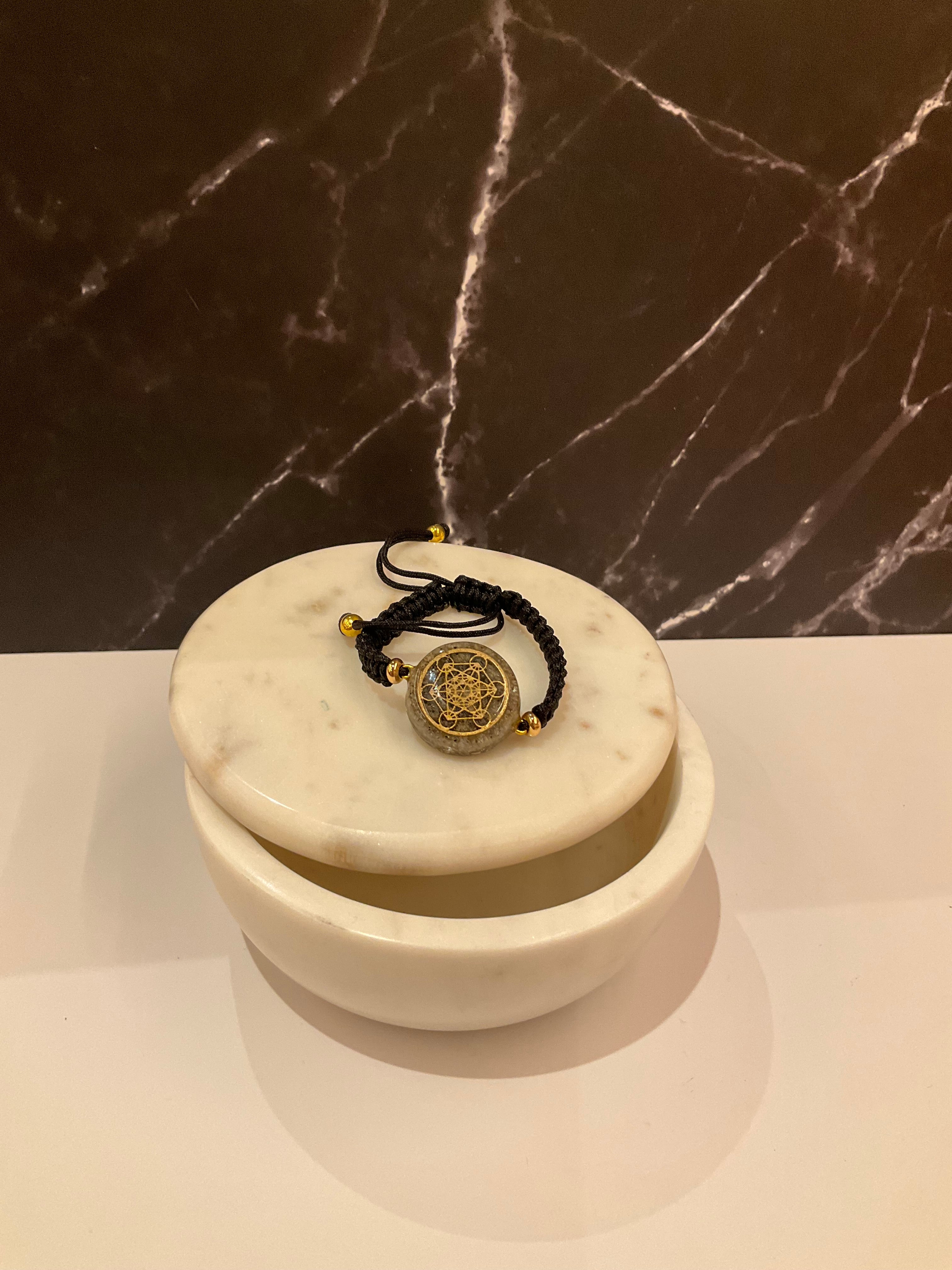 The Metatron Cube bracelet embodies sacred geometry as a symbol of balance and protection. Crafted with Orgonite Technology, it neutralizes negative frequencies, creating a protective field of up to 3 m².