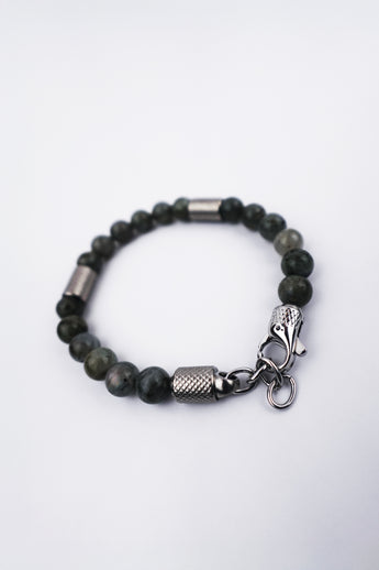 This men’s bracelet features genuine 8 mm labradorite beads, paired with 316L stainless steel components for strength and durability. Labradorite is valued for its protective and intuitive properties, with subtle iridescent flashes that symbolize inner guidance and quiet power.